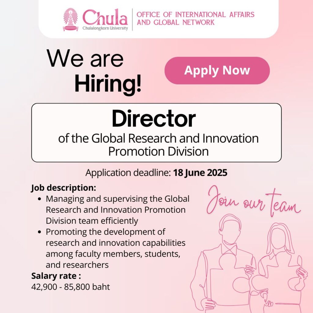 Select MonthJanuaryFebruaryMarchAprilMayJuneJulyAugustSeptemberOctoberNovemberDecemberSelect Year2025 Monthly Weekly Daily List Grid Tile No event found! News Categories Upcoming event Recent news Funding & Opportunity View all 5 June 2025Recent news Chulalongkorn University Delegates Visiting Amgen Inc. 4 June 2025Recent news Academic Engagement between Chulalongkorn University and Harvard University 5 June 2025 Join the UGM-AUN Summer Camp 2025! 5 June 2025Recent news Now Hiring: Director of the Global Academic Affairs Division 5 June 2025 Now Hiring: Director of the Global Research and Innovation Promotion Division 30 May 2025Recent news Office Closure Notice: 2nd to 3rd June 2025 29 May 2025Upcoming event Join the Opening Program 2025! Re-shaping our Futures: Global Citizenship for Dignity 27 May 2025Upcoming event [Call for Participants] IELTS Waiver & JAN Intake Day 27 May 2025 France Alumni Hackathon – Join the Challenge! 27 May 2025Recent news Durham University and Chulalongkorn University Exploring Academic and Research Collaborations 27 May 2025Upcoming event [Call for Applications] G-DORM Student Exchange Program 2025 at Niigata University (Short-Term) 22 May 2025Upcoming event [Call for Applications] 2025 International Program in Semiconductor Summer School at NCHU Page 11 of 171« First«…910111213…203040…»Last »