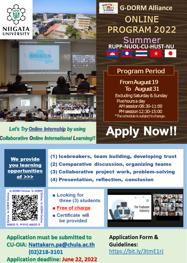 Select MonthJanuaryFebruaryMarchAprilMayJuneJulyAugustSeptemberOctoberNovemberDecemberSelect Year2025 Monthly Weekly Daily List Grid Tile No event found! News Categories Upcoming event Recent news Funding & Opportunity View all 13 June 2022Upcoming event Invitation to the Hussein International Youth Conference 2022 13 June 2022Upcoming event Invitation to PEER Seminar ‘We can’t take inclusive and equal partnerships for granted’ 13 June 2022Upcoming event 2022 AUA Academic Conference On Learning in a Post-COVID-19 Era 10 June 2022Upcoming event The 8th China International College Students”Internet+’ Innovation and Entrepreneurship Competition 9 June 2022Upcoming event Call for Applications: HYI-NUS Joint Doctoral Scholarship Program at National University of Singapore, Singapore, for the Academic Year 2023-24 9 June 2022Upcoming event Call for Applications: Harvard-Yenching Institute’s Visiting Scholars Program for Academic Year 2023-2024 9 June 2022Recent news Meeting between the Representatives of Association of Pacific Rim Universities (APRU) and Chulalongkorn University 9 June 2022Recent news Chula’s Assistant to the President Participating in the NAFSA 2022 Annual Conference & Expo 8 June 2022Upcoming event Call for Application! : The G-DORM Online Programs 2022 (For Chula students only) 8 June 2022Recent news Call for The APRU Virtual Student Exchange (VSE) Program Season 1, 2022-23 [Fall Semester] 8 June 2022Upcoming event Summer Getaway: A Glance at Computer Science, Peking University 7 June 2022Upcoming event 2022 Local Chapter Workshop – Open for Registration! Page 136 of 168« First«…102030…134135136137138…150160…»Last »