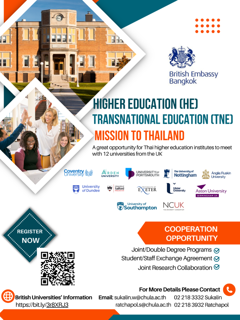 Select MonthJanuaryFebruaryMarchAprilMayJuneJulyAugustSeptemberOctoberNovemberDecemberSelect Year2025 Monthly Weekly Daily List Grid Tile No event found! News Categories Upcoming event Recent news Funding & Opportunity View all 18 September 2023Upcoming event VSRP Research Internship Program 14 September 2023Recent news Chula Administrators Taking Part in the 4th ASEAN University Network – University Innovation and Enterprise (AUN-UIE) Annual Meeting at Singapore Management University 13 September 2023Upcoming event Higher Education (HE) Transnational Education (TNE) Mission to Thailand 12 September 2023Upcoming event SAVE THE DATE – Exploring International Undergraduate Programs at Chula International Undergraduate Open House 2024 12 September 2023Upcoming event [Call for Contributions] Case studies: Generative AI in Education — Opportunities, Challenges and Future Directions in Asia and the Pacific 12 September 2023Upcoming event Invitation to Learning Innovation Festival 2023 (6 Oct), organised by Singapore Management University 11 September 2023Upcoming event Frontiers Planet Prize 2024, 3 Prizes of CHF 1 million Each: Call for Submission 11 September 2023Upcoming event Invitation to K-STP Training Program from October 30th to November 10th 7 September 2023Upcoming event [Call for Abstract] INREM 2023 7 September 2023Upcoming event [Call for Application] Judges for SATU SMART 5th International Innovation Competition 6 September 2023Upcoming event Study and Work in Japan Fair for Thailand 2023 6 September 2023Upcoming event [Call for Applications] Short Term Fellowships for UG/PG Students and PhD Scholars Page 58 of 168« First«…102030…5657585960…708090…»Last »