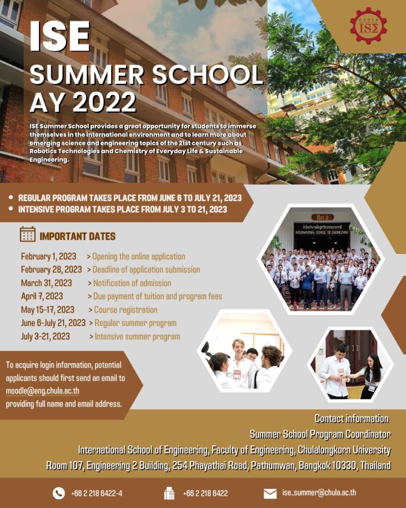 Select MonthJanuaryFebruaryMarchAprilMayJuneJulyAugustSeptemberOctoberNovemberDecemberSelect Year2025 Monthly Weekly Daily List Grid Tile No event found! News Categories Upcoming event Recent news Funding & Opportunity View all 13 February 2023Funding & Opportunity e-ASIA JRP 12th Call for Proposal in the field of Environment on the topics of ‘Low Carbon Society’ 13 February 2023Upcoming event AUA Youth Forum 2023 10 February 2023Upcoming event 2023-2024 Canada-ASEAN Scholarships at Polytechnique Montréal 10 February 2023Upcoming event [Call for Applicants] ISE Summer School Academic Year 2022 10 February 2023 Thailand Education & Jobs Fair 2023 in Cambodia 10 February 2023Upcoming event 11th Edition Lee Kuan Yew Global Business Plan Competition (LKYGBPC) 2023 10 February 2023Upcoming event Global Ed talk #3: “Holocaust and the establishment of the State of Israel: The lasting impact on the world” 10 February 2023Recent news Chula Exchange & Study Abroad Fairs 2023 10 February 2023Upcoming event [Call for Applicants] 2023 World Bank Youth Summit Pitch Competition 9 February 2023 Chula Professors of Economics Receiving a National Research Award on the Thailand Inventors’ Day 2023 9 February 2023Funding & Opportunity The ePOP Contest – 2023 Edition 9 February 2023Upcoming event 2023 RSA Annual Conference – Special Session, Tips for Marketing and Next steps Page 93 of 168« First«…102030…9192939495…100110120…»Last »