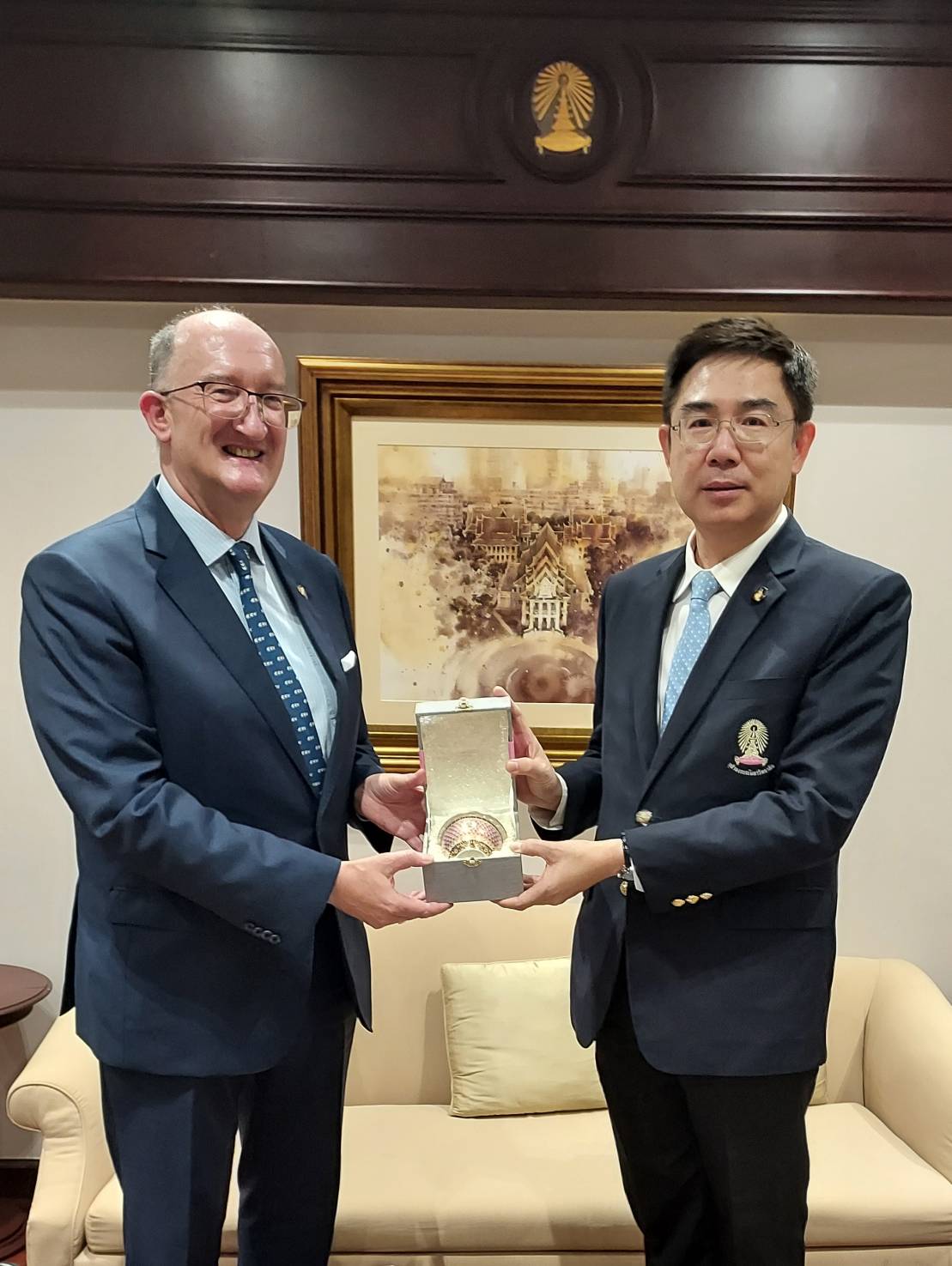 On December 7th, 2022, Chulalongkorn University, represented by President Bundhit Eua-arpon, Ph.D. and Dr. Ram Piyaket, Director of Office of International Affairs and Global Network, had a meeting with H.E. Mr. David Daly, Ambassador of the European Union to Thailand.