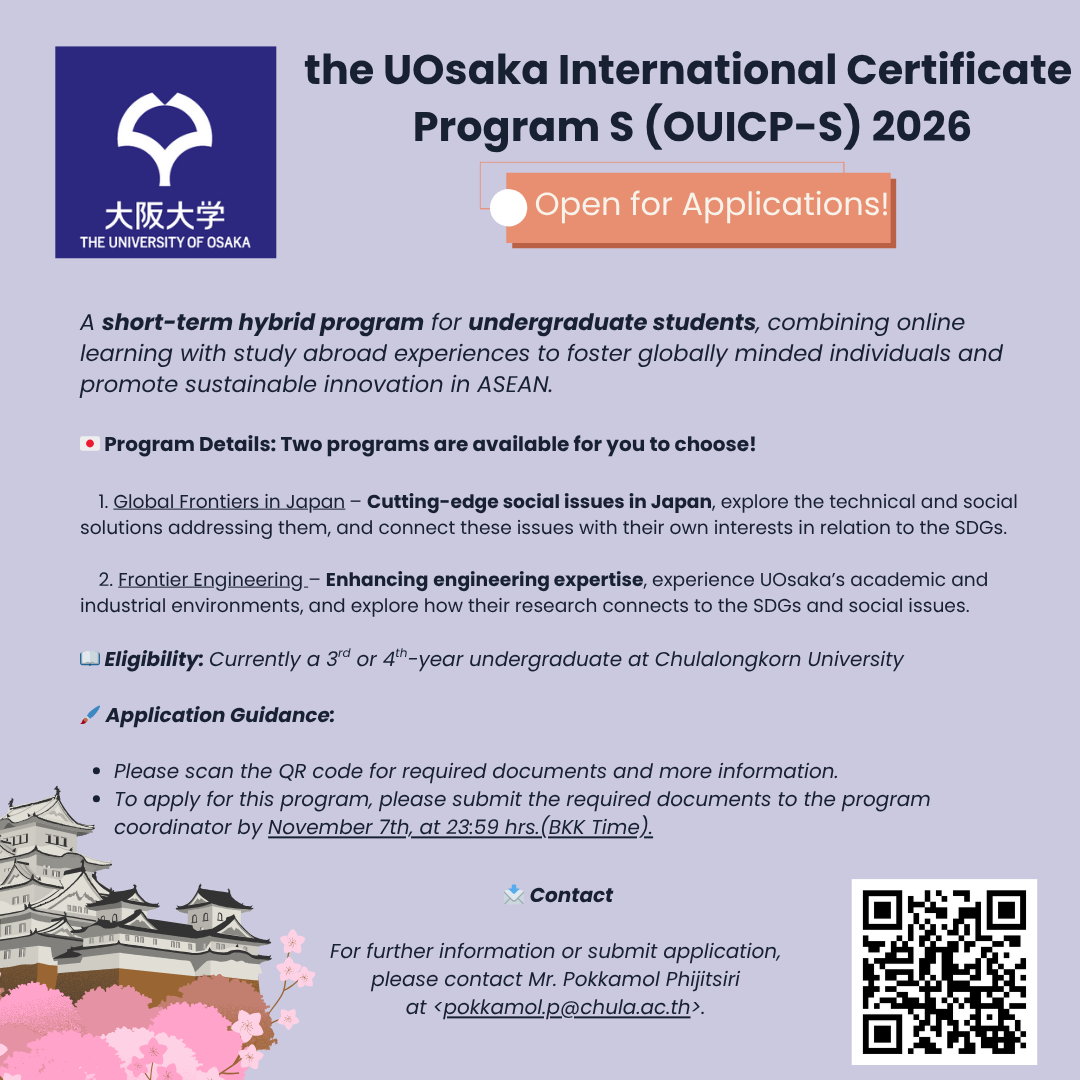 Kyoto University is pleased to announce the call for application for October 2024 Asian Future Leaders Scholarship Program (AFLSP). This program is for those who expect to enroll in a master’s degree program as a regular (degree-seeking) student at a graduate school of Kyoto University in October 2024.