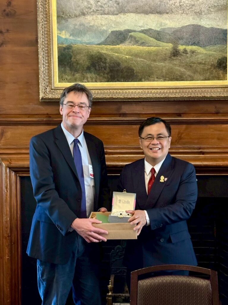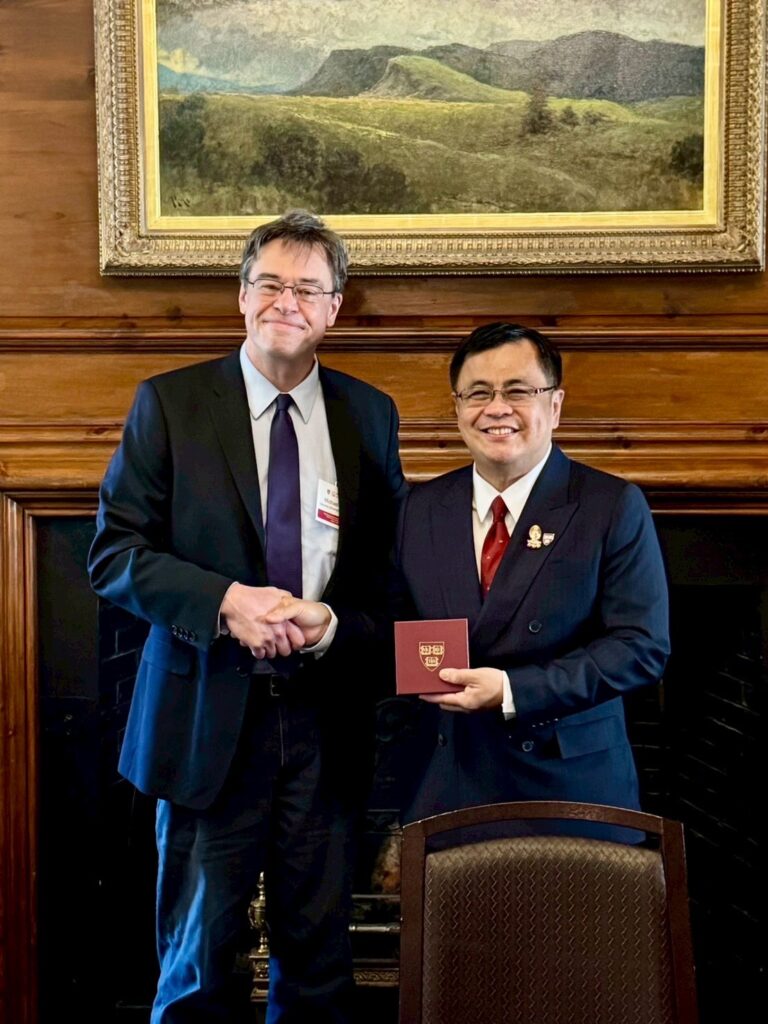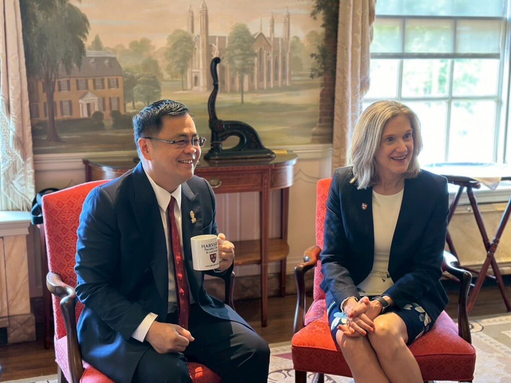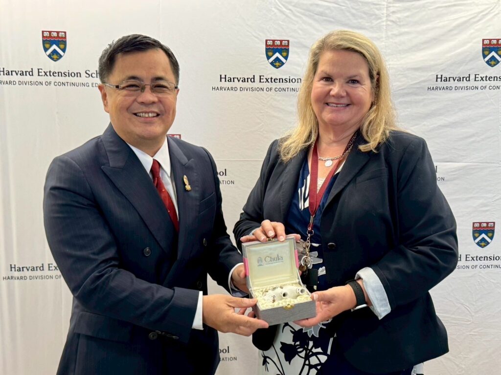 On June 3rd, 2025, Chulalongkorn University delegates—including Vice Presidents, Assistants to the President, Deans of the Faculties and Colleges, and Directors of the Institutions—led by President Wilert Puriwat, visited Harvard University. The delegation was welcomed by Katherine G. O’Dair, University Marshal and Mark C. Elliott, Vice Provost for International Affairs. The meeting, held at the Harvard Faculty Club, focused on potential collaborations between the two institutions. On this occasion, President Wilert Puriwat was invited to sign the official Harvard guest book, to mark a visit of the Chulalongkorn University delegation.