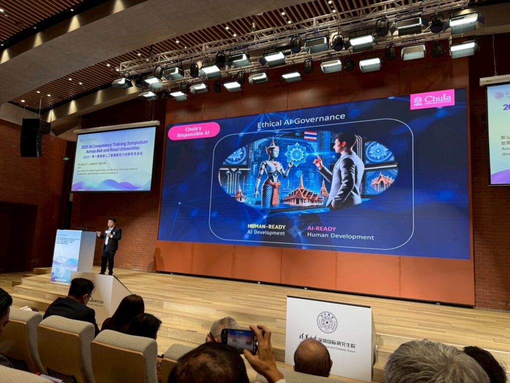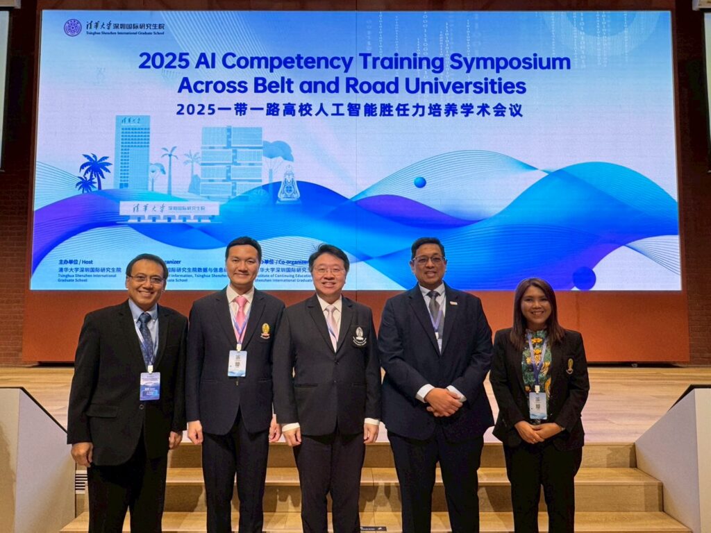 From August 29th to 30th, 2025, a Chulalongkorn University delegation participated in the 2025 AI Competency Training Symposium across Belt and Road Universities (2025 ACTS), hosted at the Tsinghua Shenzhen International Graduate School (Tsinghua SIGS). The delegation was led by Assoc. Prof. Palanee Ammaranond, Ph.D., Vice President for International Affairs and Global Network, and Assoc. Prof. Manoj Lohatepanont, Sc.D., Vice President for Physical Resource Management and Information Technology, with participation from Assoc. Prof. Chaiyachet Saivichit, Ph.D., and Asst. Prof. Tewarit Sarachana, Ph.D., both serving as Assistants to the President.