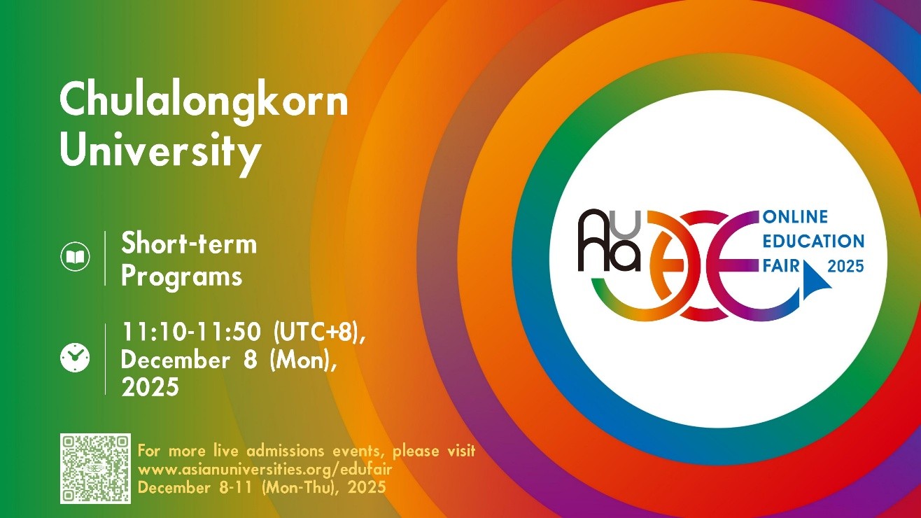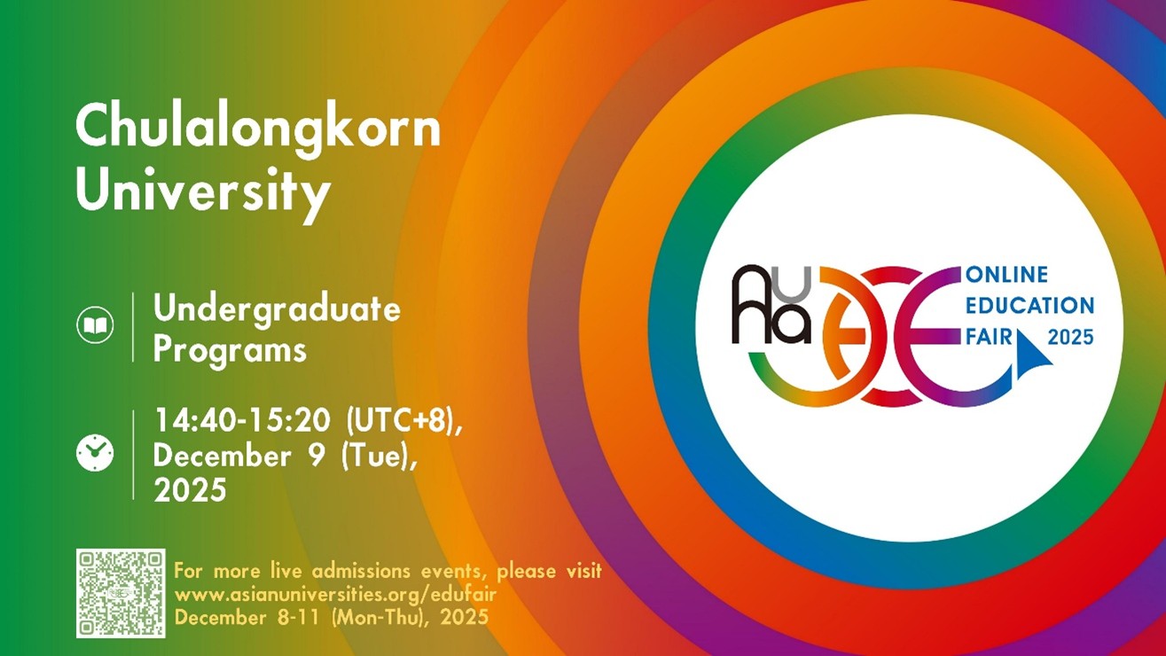 Chulalongkorn University is set to participate in the AUA Online Education Fair 2025, taking place from December 8 to December 11, 2025. Throughout the fair, different academic programs will be showcased to prospective students worldwide. This virtual event, organized by the Asian Universities Alliance (AUA), brings together 15 member universities across Asia to highlight their academic strengths and promote international collaboration.