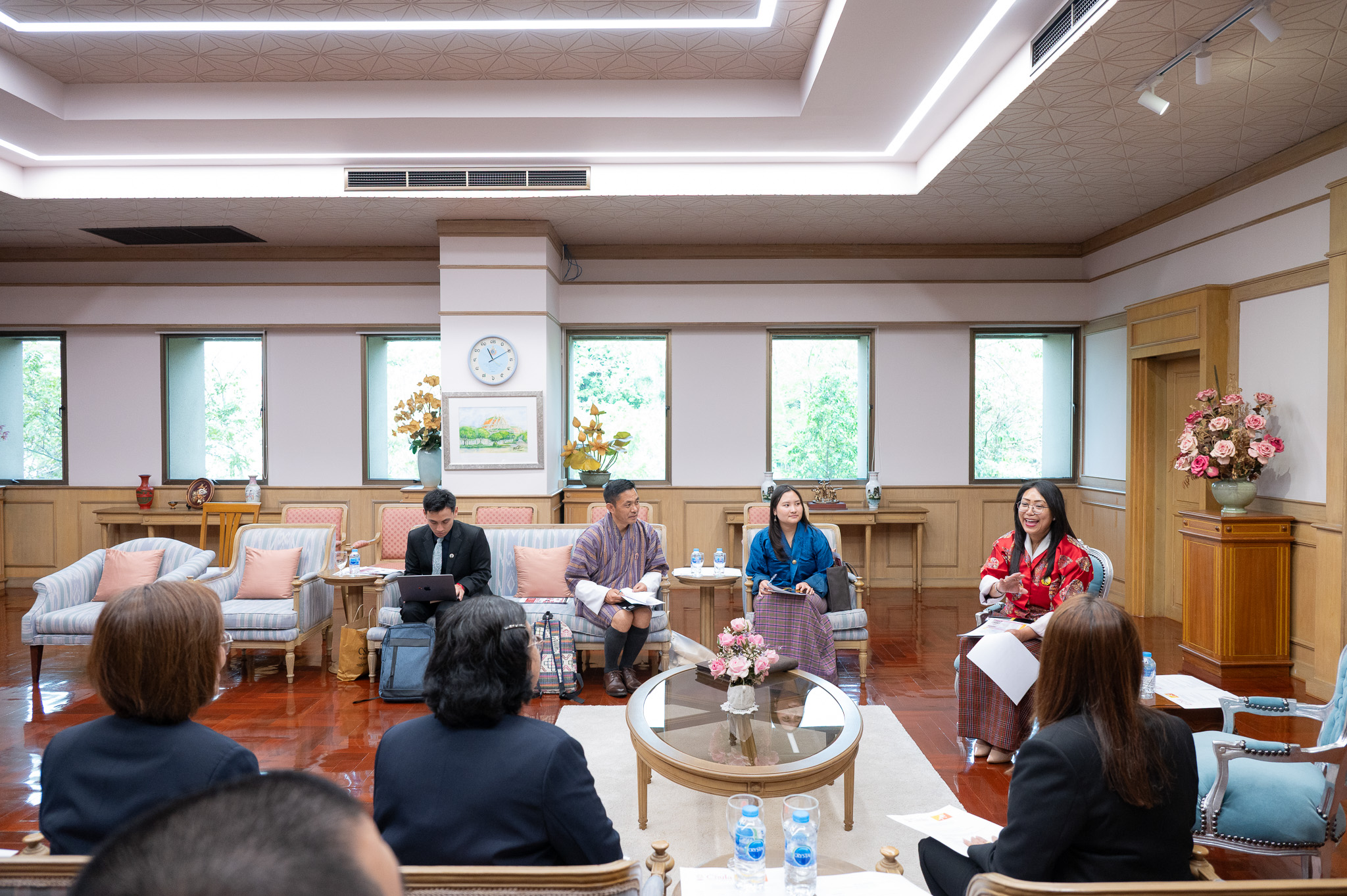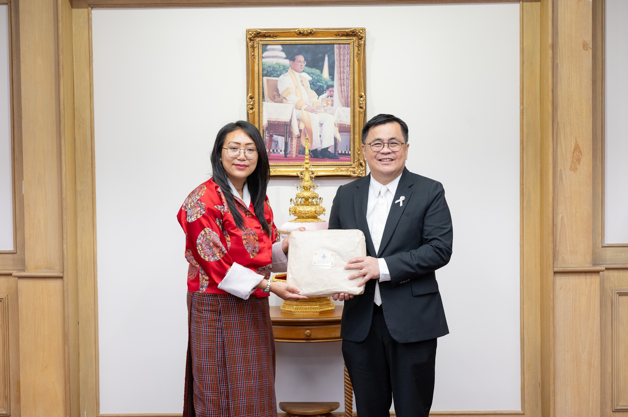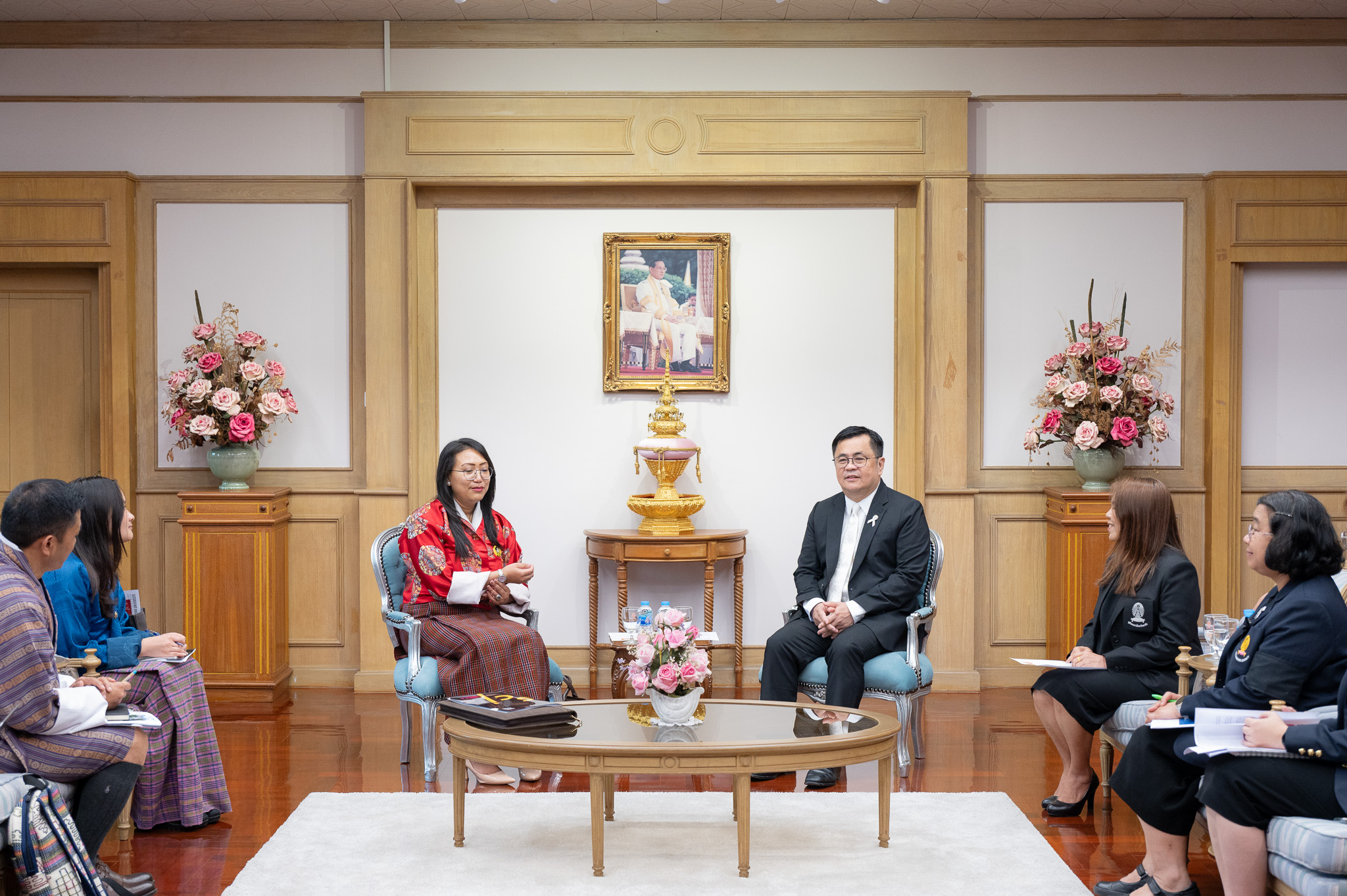On 16 February 2026, Professor Dr. Wilert Puriwat, President of Chulalongkorn University welcomed Her Excellency Yeezang De Thapa, Minister of Education and Skills Development of the Kingdom of Bhutan, along with her delegation from the Ministry and the Royal Bhutanese Embassy, on the occasion of their visit to the University. The meeting was held at the Reception Room, 2nd Floor, Chamchuri 4 Building.