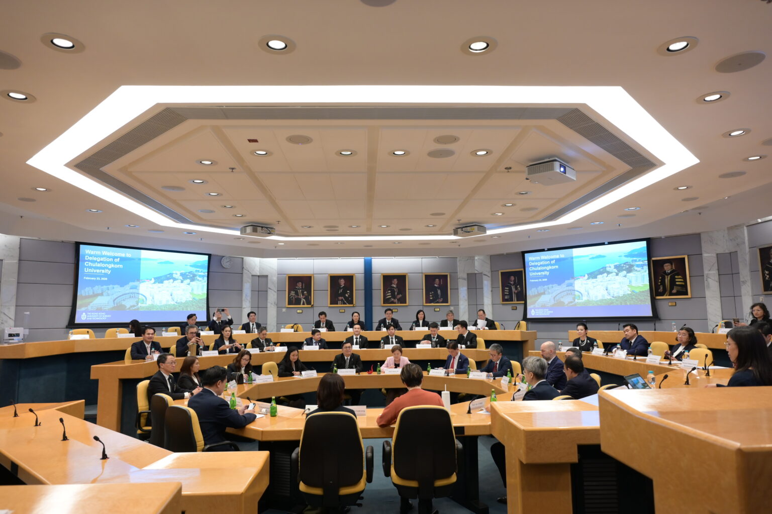 On February 23, 2026, Professor Dr. Wilert Puriwat, President of Chulalongkorn University, together with Vice Presidents and members of the executive team, had a senior leadership meeting with administrators of the Hong Kong University of Science and Technology (HKUST), led by Professor Nancy Ip, President of the HKUST. The meeting was held at the Council Chamber on the 7th floor of HKUST.