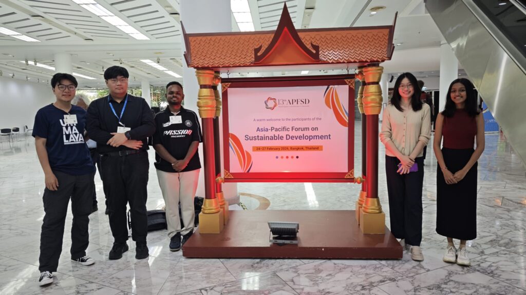 On February 24, 2026—the opening day of APFSD 2026—the forum was held at the UN ESCAP Hall, bringing together leaders and representatives from across the Asia-Pacific region to reaffirm commitments toward transformative, equitable, innovative, and coordinated actions for sustainable development. The CareVend team, together with their lead mentor, Dr. Jaime Jacqueline Jayapalan of Universiti Malaya, had the privilege of attending this by-invitation-only event.