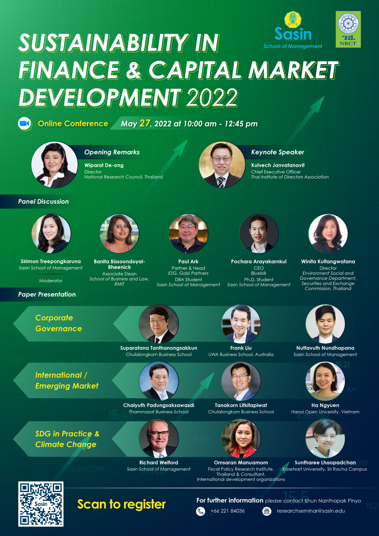 Join us at the 2022 Sustainability in Finance and Capital Market Development Conference, sponsored by National Research Council of Thailand (NRCT) and Sasin School of Management.