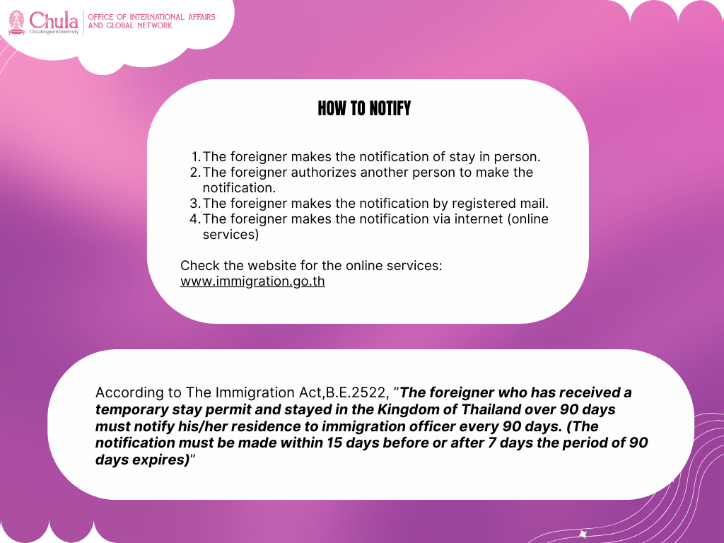 Should you need more information or any assistance, kindly send an email to visa_oia@chula.ac.th or make a phone call to 0 2218 3127 or 0 2218 3134.